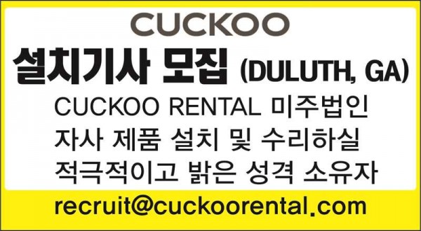 [조지아 둘루스] 설치기사 모집 AtlantaJoa 0 1133 2021.06.28 21:03 채용정보지역 :ALL CITY/NC직종 :기타근무형태 :Full/Part Time경력 :무관연봉/급여 :협의