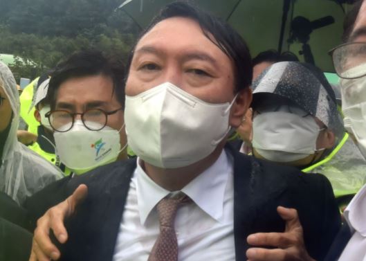 “반역자 꺼져라” 윤석열, 박정희 생가서 비 ‘쫄딱’