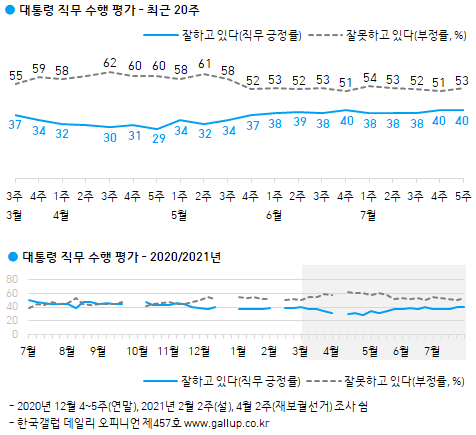 文 지지율 다시 40%… 與도 野 오차범위 밖 따돌려