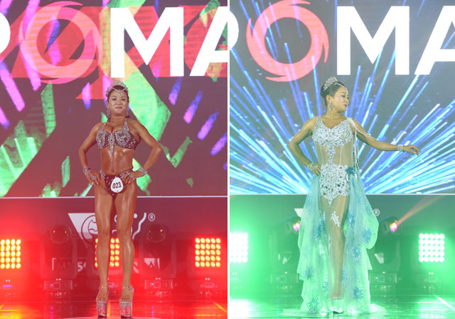 윤하나 교수가 7월 말 열린 2021맥스큐 머슬마니아 피트니스 코리아챔피언십 대회에서 연기를 하고 있다. 윤하나 교수 제공.