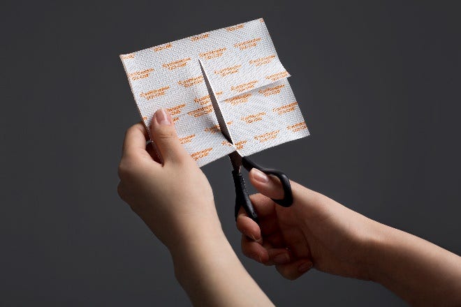 2. 흉터와 주변 피부를 덮을 수 있는 크기로 겔 시트를 자른다.