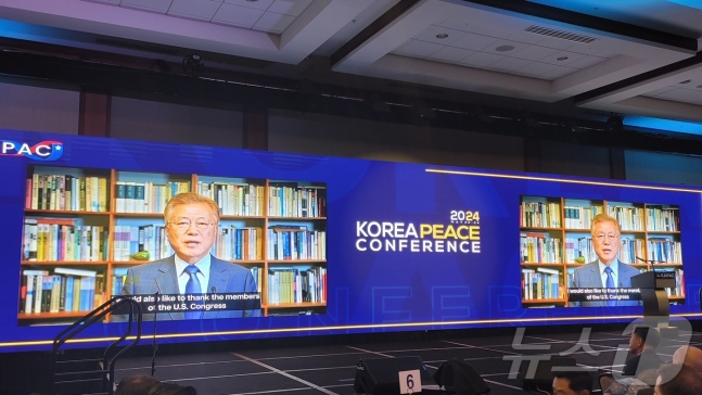 '2024 코리아 피스 콘퍼런스' 갈라 행사에 영상 축사를 보내 축하의 뜻을 전하고 있다. (워싱턴=©뉴스1) 김현 특파원