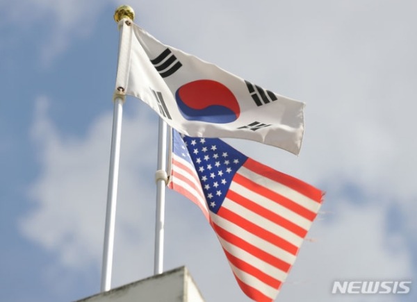 [뉴시스] 태극기와 성조기가 펄럭이고 있다. 2023.07.26.