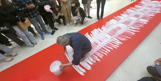 이곳에서는 1970년대 한국 실험 미술을 이끈 선구자로 꼽히는 이건용(81) 작가가 자신의 대표 행위예술 작품인 ‘달팽이 걸음’ 특별전을 선보이기도 했다. 행사 당일 관객 100여 명은 5층 전시실을 가득 채우고 이 작가의 행위예술을 지켜봤다.