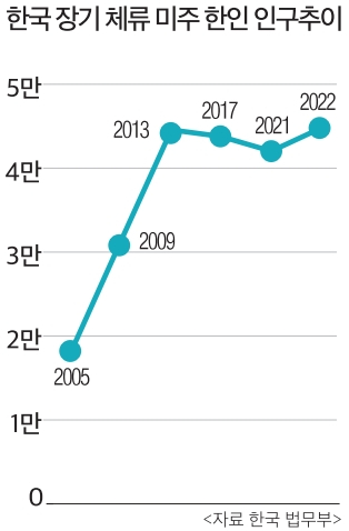 한국 법무부에서 발표하는 출입국 통계에 따르면 2022년 현재 한국에 체류하는 미주 한인은 4만5752명이다. 특히 2005년도의 1만8409명에서 2배 이상 늘어난 규모다.