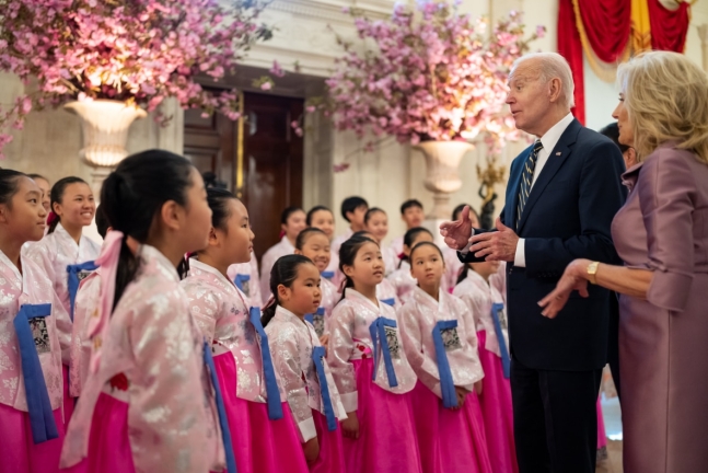바이든 대통령과 질 바이든 여사는 이날 합창단과 만난 사진을 각각 트위터에 올렸다. 바이든 대통령은 합창단 앞에서 발언하고 있는 사진과 함께 “오늘 아침 뉴저지 한인 2세 소년 소녀들의 합창을 듣고 기뻤다”고 적었다. 질 바이든 여사는 “한국계 미국인들을 위한 특별한 순간, 특별한 날이었다”고 했다.