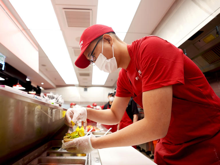 김동선 한화갤러리아 전략본부장이 파이브가이즈 국내 1호점 개장을 앞두고 홍콩에서 실습에 참여했다. /한화갤러리아 제공  © 제공: 조선일보