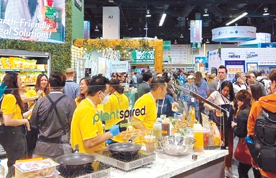 풀무원은 지난 8일부터 11일까지 애너하임에서 열린 ‘2023 자연식품박람회’에 참가해 식물성 대체육 스테이크와 토핑 두부 신제품 등 식물성 지향 간편식 제품을 선보였다고 12일 밝혔다.