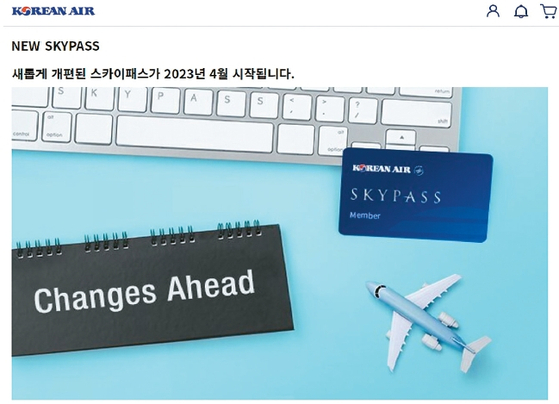 대한항공 홈페이지에 공지된 스카이패스 마일리지 적립, 공제 개편 안내. [대한항공 홈페이지 캡처]