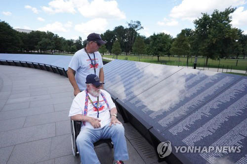 한국전참전용사기념공원에 세워진 추모의 벽을 둘러보는 참전 용사 © 제공: 연합뉴스