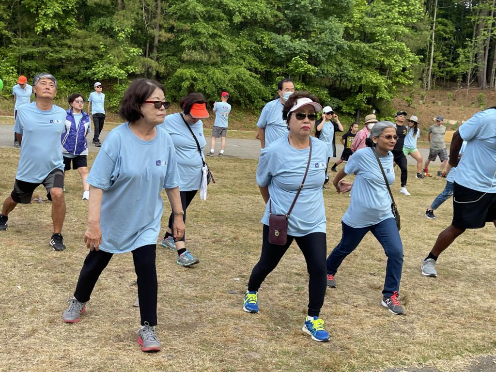 이번 행사는 귀넷카운티 셰리프 사무실이 협찬하고 마스터 카드, 조지아 파워, UPS재단, 노스조지아 카톨릭재단, NAAAP 애틀랜타, 잭슨EMC재단, 재외동포재단 등이 후원했다. 사진은 걷기 행사에 앞서 참가자들이 몸을 푸는 체조를 하고 있는 모습.