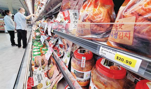 달러 강세로 한국에서 수입해 미국으로 들어오는 김치 등 식료품 가격은 가격 상승 억제 효과를 받는다. 그러나 코로나발 물류비와 생산비 급증 등으로 체감할 만큼의 가격하락은 아직 없다. [박상혁 기자]