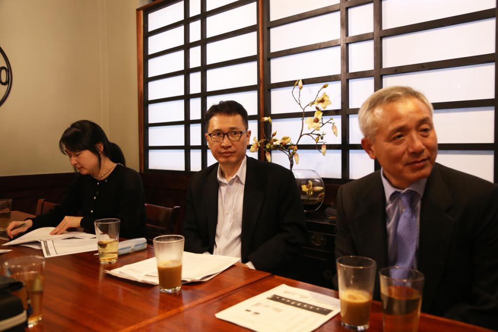 제일IC은행이 지난해 4분기 한인은행 가운데 최고 수익률 은행으로 우뚝섰다. 17일 둘루스 한식당에서 제일은행 경영진이 은행실적에 대해 설명하고 있다. 오른쪽부터 김동욱 행장, 신동원 수석부행장, 김윤정 사원.