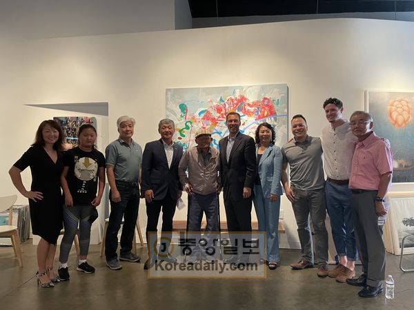 지난 9일 애틀랜타시에 있는 카이 린 아트에서 애틀랜타 시의회 의장 선거에 출마하는 더그 쉽먼(오른쪽 다섯 번째) 후보가 한인들과 한자리에 섰다. 쉽먼 후보는 이날 애틀랜타시에서 스몰 비즈니스를 운영하는 한인 사업주들의 고충을 듣고 대안을 제시했다.
