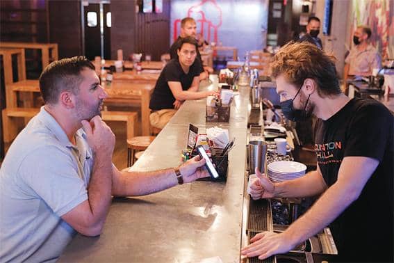“백신 맞았어요” 증명하는 뉴욕 식당고객