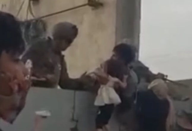 19일(현지시간) 영국 일간 인티펜던트 등에 따르면 이날 아프가니스탄의 한 호텔에서 3m 이상 돼 보이는 철조망에 막혀 진입이 어려워지자 일부 아기 엄마들이 사람들의 도움을 받아 철조망 너머에서 경비를 서는 군인들에게 아기를 던졌다.