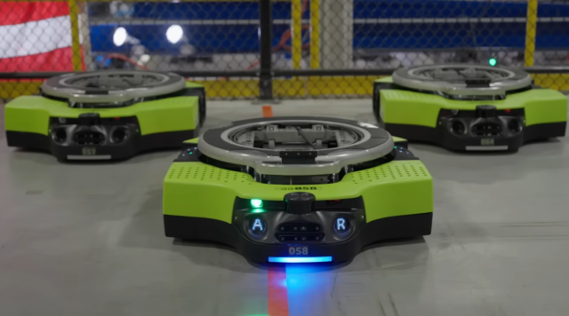 아마존 물류창고에서는 다양한 로봇들이 업무에 투입된다. 선반에서 물건을 꺼내 옮기는 로봇, 물품을 분류하는 자동화 시스템, 배송용 포장을 돕는 로봇 등이다. 아마존의 최신 로봇 중 하나인 벌칸은 다양한 진열대에서 물건을 고를 수 있는 촉감까지 느낄 수 있다.