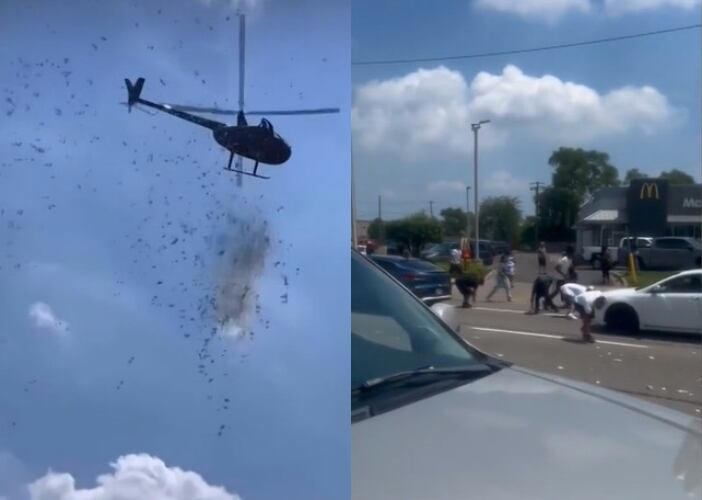 디트로이트 뉴스 등에 따르면 지난달 27일 그라티오트 애비뉴와 코너 스트리트 근처에서 헬리콥터가 떠다니며 보행자들에게 수천 달러의 현금을 투하했다.