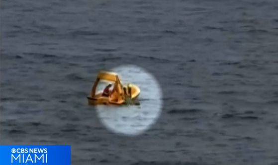 노란 구명보트가 물에 빠진 부녀를 구조하고 있다. [사진 = CBS]