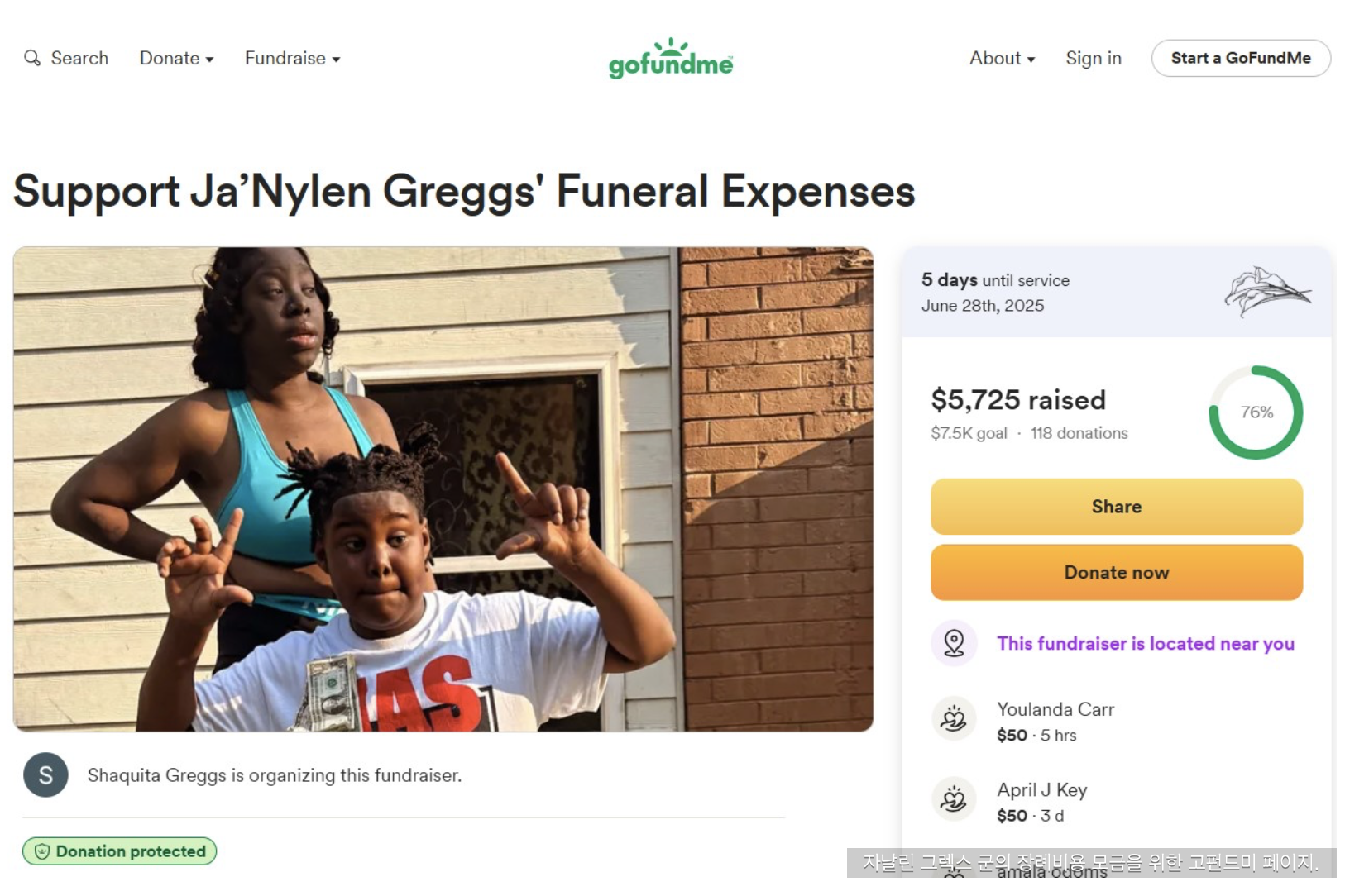 그렉스의 어머니는 장례 비용을 지원받기 위해 고펀드미 페이지를 개설했다. 23일 오후 현재 목표액 7500달러 중 약 5700달러가 모금됐다.