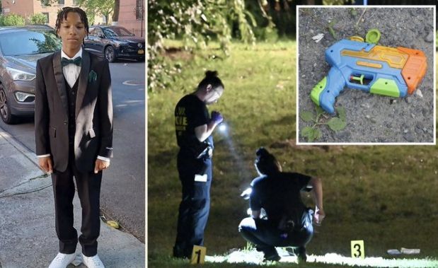 총기 사건의 피해자 대럴 해리스(17)와 현장에서 발견된 물총. 뉴욕포스트 SNS 캡처
