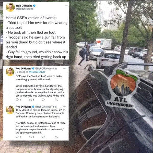 지난 4일 ‘Atlanta Uncensored’ 계정의 인스타그램에 공개된 한 영상에서는 엣지우드 애비뉴 (Edgewood Avenue) 인근에서 순찰대원이 한 도망치는 흑인 남성을 추격하다가 넘어지자 이 남성을 두세차례 발로 짓밟고 도로에서 끌어내 수갑을 채우는 모습이 담겨 있다.