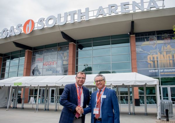 인피니트 센터 ‘개스 사우스 아레나’로 AtlantaJoa 0 1728 2021.07.10 09:16 슈가로프에 있는 인피니트 에너지 센터의 간판이 ‘개스 사우스 아레나’로 바뀌었다. 귀넷 관광청과 개스 사우스 관계자들은 지난 7일 개스 사우스 아레나 로고가 세워진 센터 앞에서 개명식 행사를 개최했다. 개스 사우스 케빈 그레이너(오른쪽) CEO가 귀넷 관광청 스탠 홀 COO와 한자리에 섰다. [사진 = 스탠 홀 귀넷 관광청 COO 링크드인]