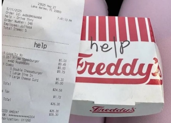 12일(현지시간) 미 '뉴욕포스트'는 최근 온라인 커뮤니티 '레딧'에 올라온 한 사연을 소개했다. 사연의 주인공은 미국 플로리다주 레이크웨일스에 거주하는 A씨로, 그는 최근 플로리다의 패스트푸드점을 방문했다고 한다. 그러나 주문한 햄버거 포장 상자를 받아든 그는 이내 깜짝 놀랐다. 구매 영수증과 상자에 "도와주세요"라는 글자가 적혀 있었기 때문이다.
