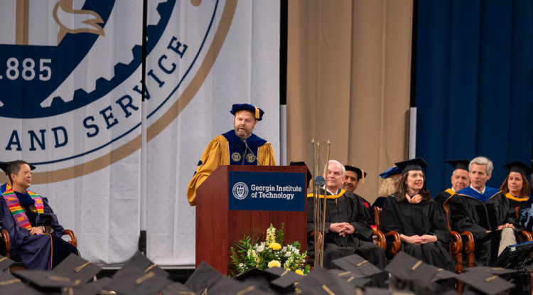 2일 조지아텍에서 열린 2025학년도 졸업식에서 크리스토퍼 클라우스가 축사를 전하고 있다. [조지아텍 제공]