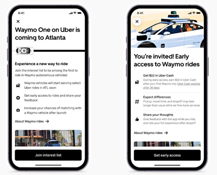 우버 호출 앱을 통해 웨이모 관심 이용자로 등록하면 로보택시를 탑승할 수 있다. 우버 제공